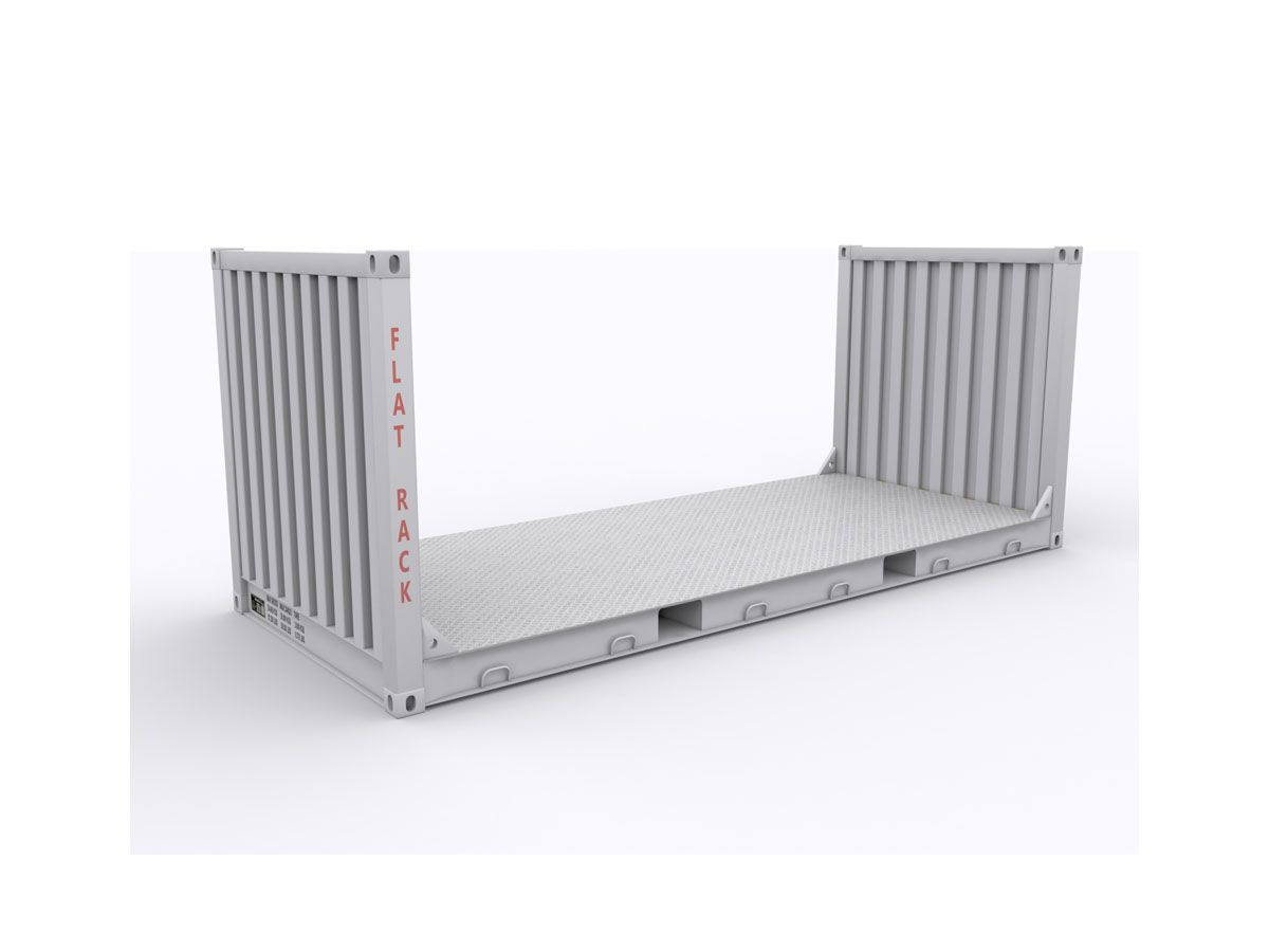 The 20ft Flat Rack container is available with walls that are fixed, or folding ends. They are commonly used for the stowage of heavy loads and/or load.